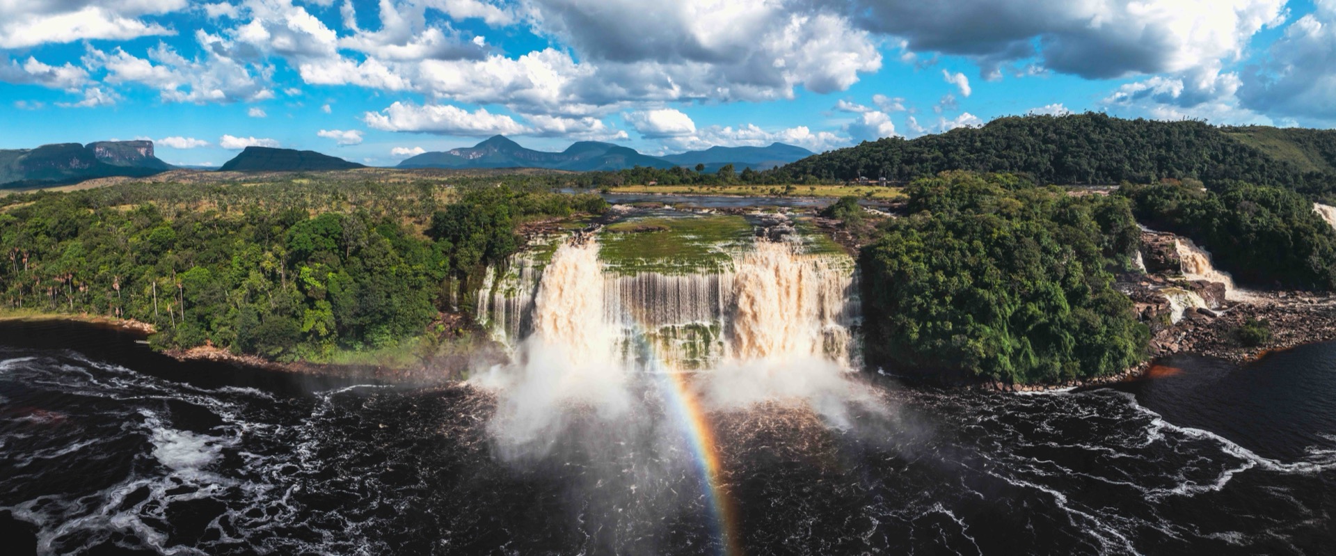 This is Salto el Hacha, one of the most powerful falls in Canaima's lagoon. But the true magic of this place isn't just in the view; it's in the experience. This is one of the most incredible things you can do in Venezuela: to walk behind its thundering curtains of water. You don't just see the power, you feel it. This image, with its perfect rainbow, is a portrait of that raw, beautiful, and utterly unique experience.